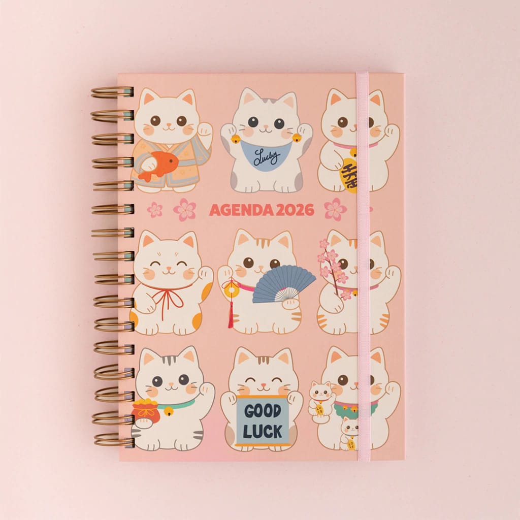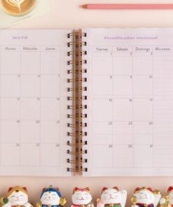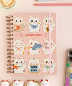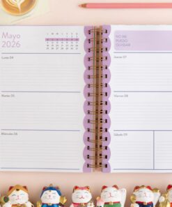 Es semana a la vista, tamaño A5, con tapa dura y elástico a tono. Encuadernación en espiral. Agenda de 100 hojas, impresa en papel obra de 80gr. El interior es el mismo en todas las agendas.
