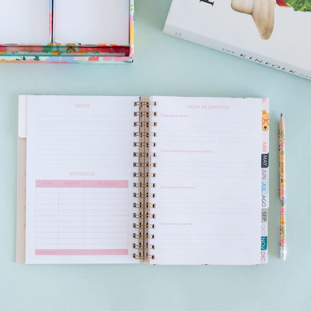 – Está llena de hojas extras donde podés anotar tus gastos, hacer el balance del año, poner tus objetivos, escribir anotaciones, y mucho mas!