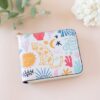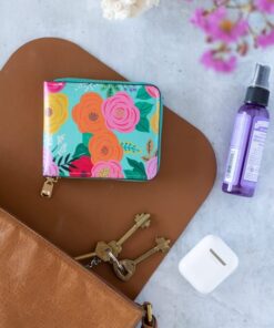 Esta billetera tiene el tamaño ideal para cualquier cartera. Está hecha de cuerina estampada y tiene lugar para billetes, tarjetas y un monedero.