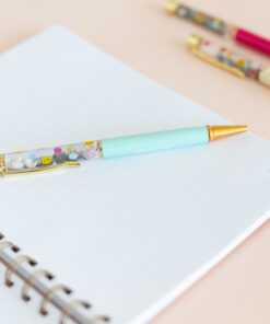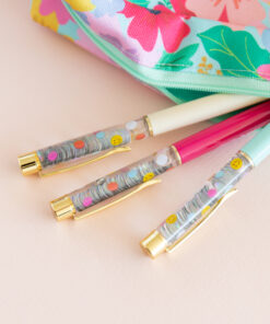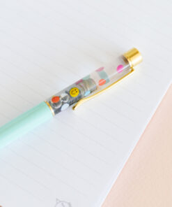 Alegrá tu escritorio con esta birome de confetti y caritas felices.