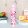 Botella recta de plástico rígido en colores pastel con estampadas en serigrafía blanca