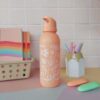 Botella recta de plástico rígido en colores pastel con estampadas en serigrafía blanca