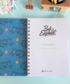 Tamaño A5 anillado con 70 hojas rayadas y elástico.
