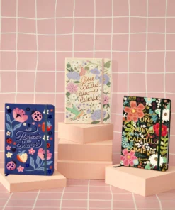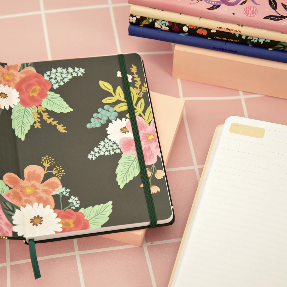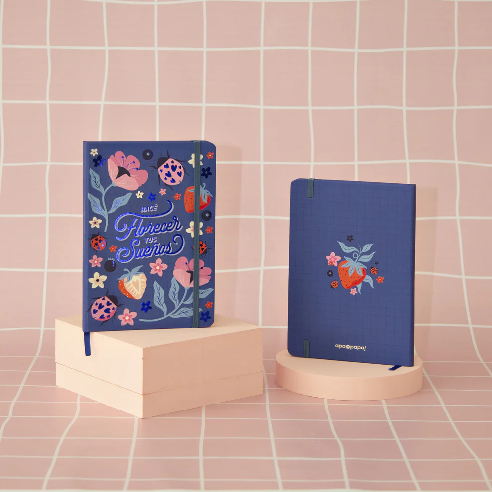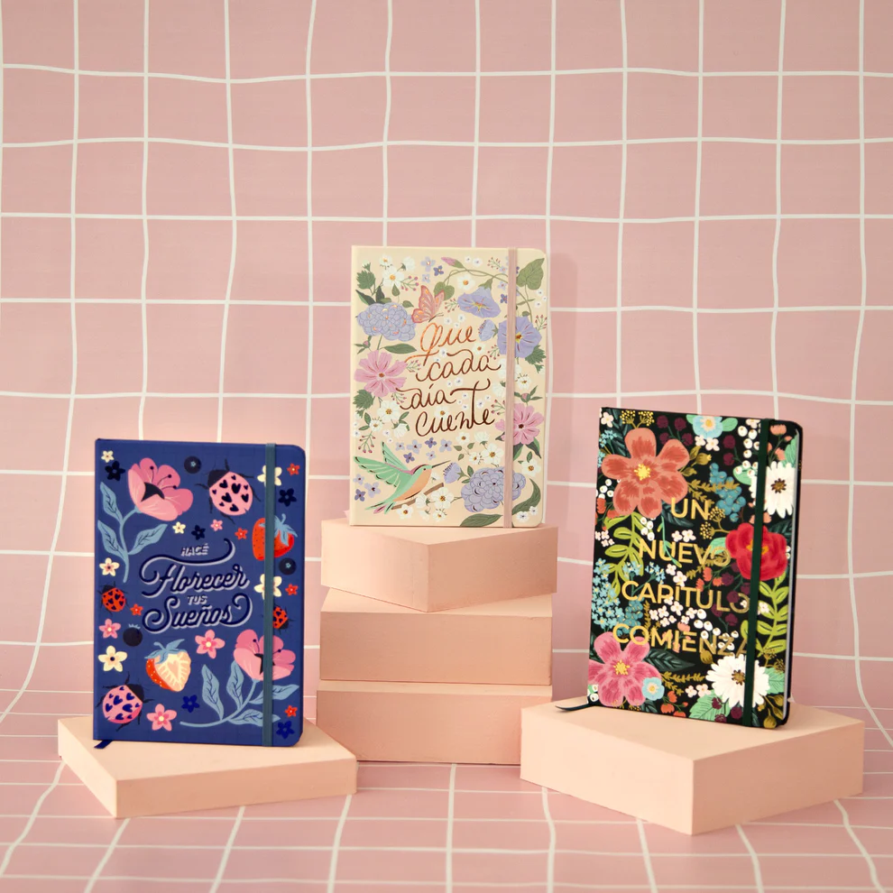 Con terminación Soft Touch mate, hot stamping, Vienen con elástico, puntas redondeadas y tapa dura.