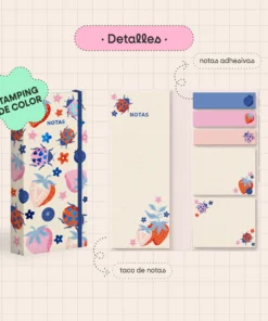 Un cuaderno tapa dura con terminación soft touch mate, con elástico a tono y en su interior…. Ni más ni menos que un conjunto de 5 notas adhesivas y un taco de notas increíble. Para llevarlo a todos lados!