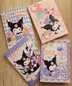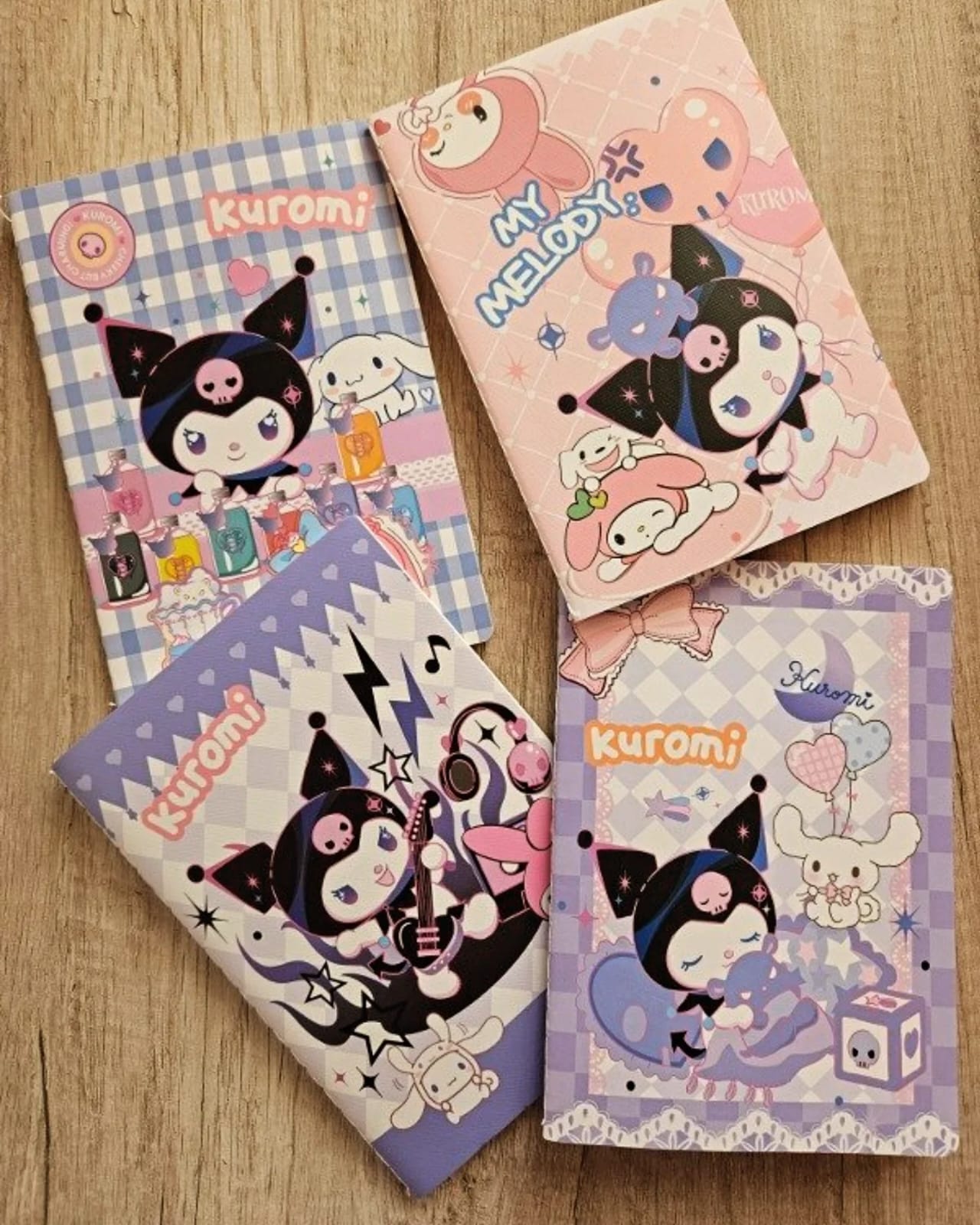 Esta libreta cosida viene en 4 diferentes diseños del personaje Kuromi, son súper lindas para acompañar tus ideas. ¡Su tamaño permite que lo puedas llevar a todos lados!