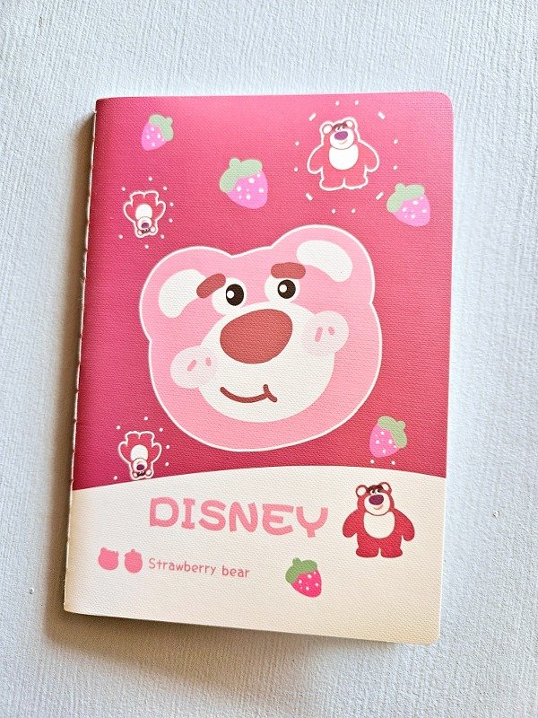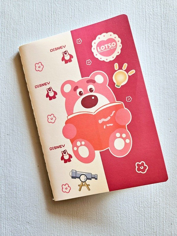 Esta libreta cosida viene en 4 diferentes diseños del personaje Lotso, son súper lindas para acompañar tus ideas. ¡Su tamaño permite que la puedas llevar a todos lados!