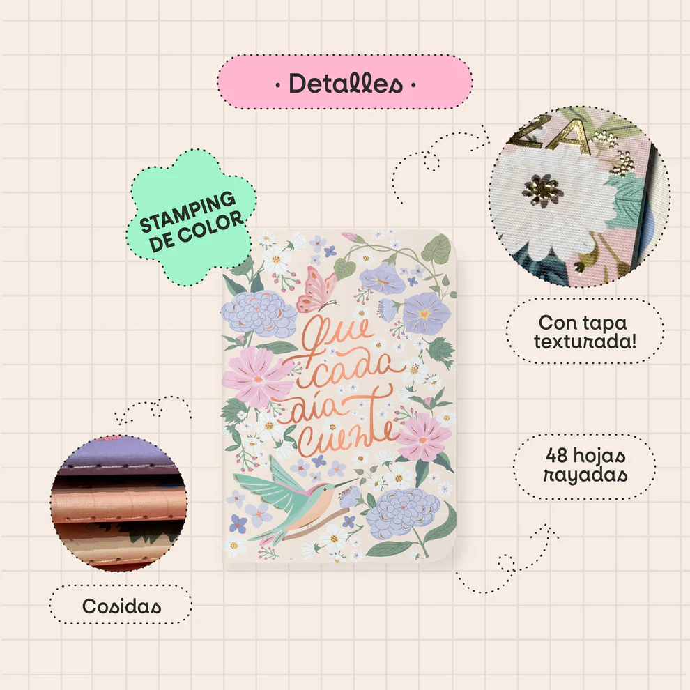 Rayaadas en su interior, con sector para titulares y fecha. Y una sorpresa… las tapas son con papel texturado mate, que son una cosa de locos!