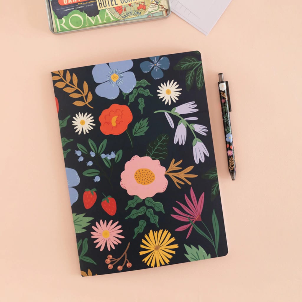 Libreta grande Flores negra