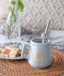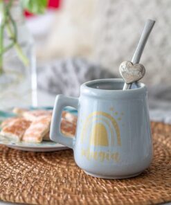 Mate de cerámica con mango, estampa en serigrafía gold y bombilla de acero inoxidable con detalle de corazón… el más lindo de todos!