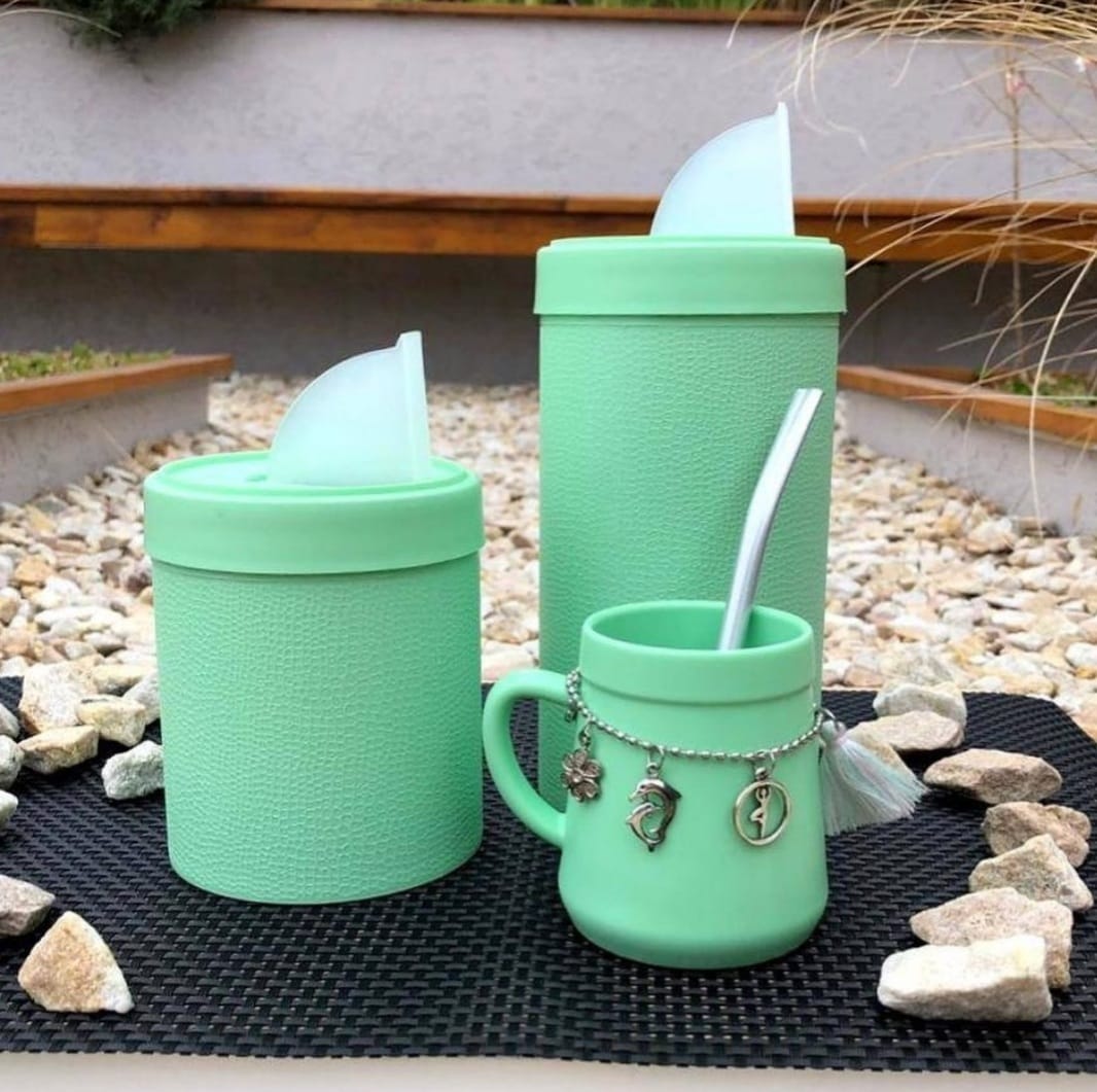 Juego de yerbera y azucarera de plástico con pico vertedor.