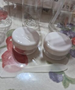Vienen botellitas con diferentes picos: rociador y dosificador para cremas o shampoo/ crema de enjuague. Además cuenta con dos recipientes con tapta a rosca y una palita para llevar tus cremas específicas a todos lados.
