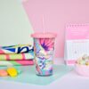 Vaso de plástico doble capa con sorbete y tapa a rosca