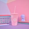 Tiene tapa a presión, sorbete largo y es de una calidad excepcional. La estampa es simple y super delicada, para los que piensan que menos es más 🙂
